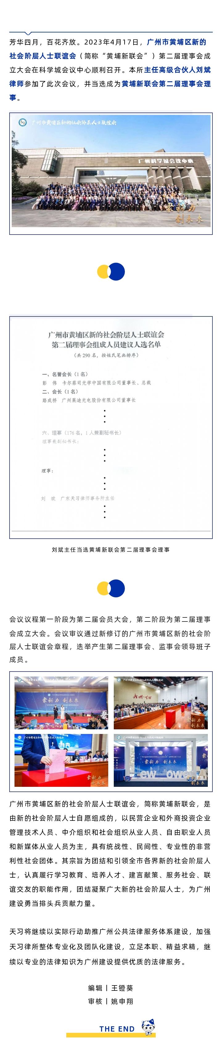 天习动态 | 喜讯!本所主任刘斌律师当选广州市黄埔区新的社会阶层人士联谊会第二届理事会理事